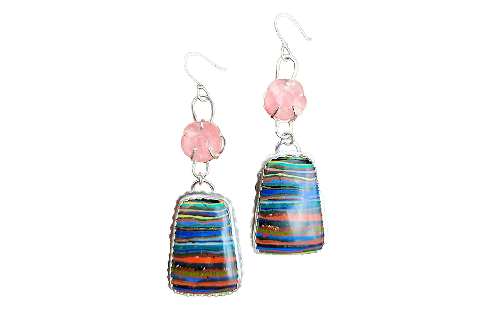 "Over The Rainbow" Sterling Silver, Cherry Quartz, & Rainbow Calsilica Earrings