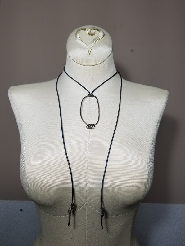 "Pairs Well With Jeans" Sterling Silver Leather Necklace