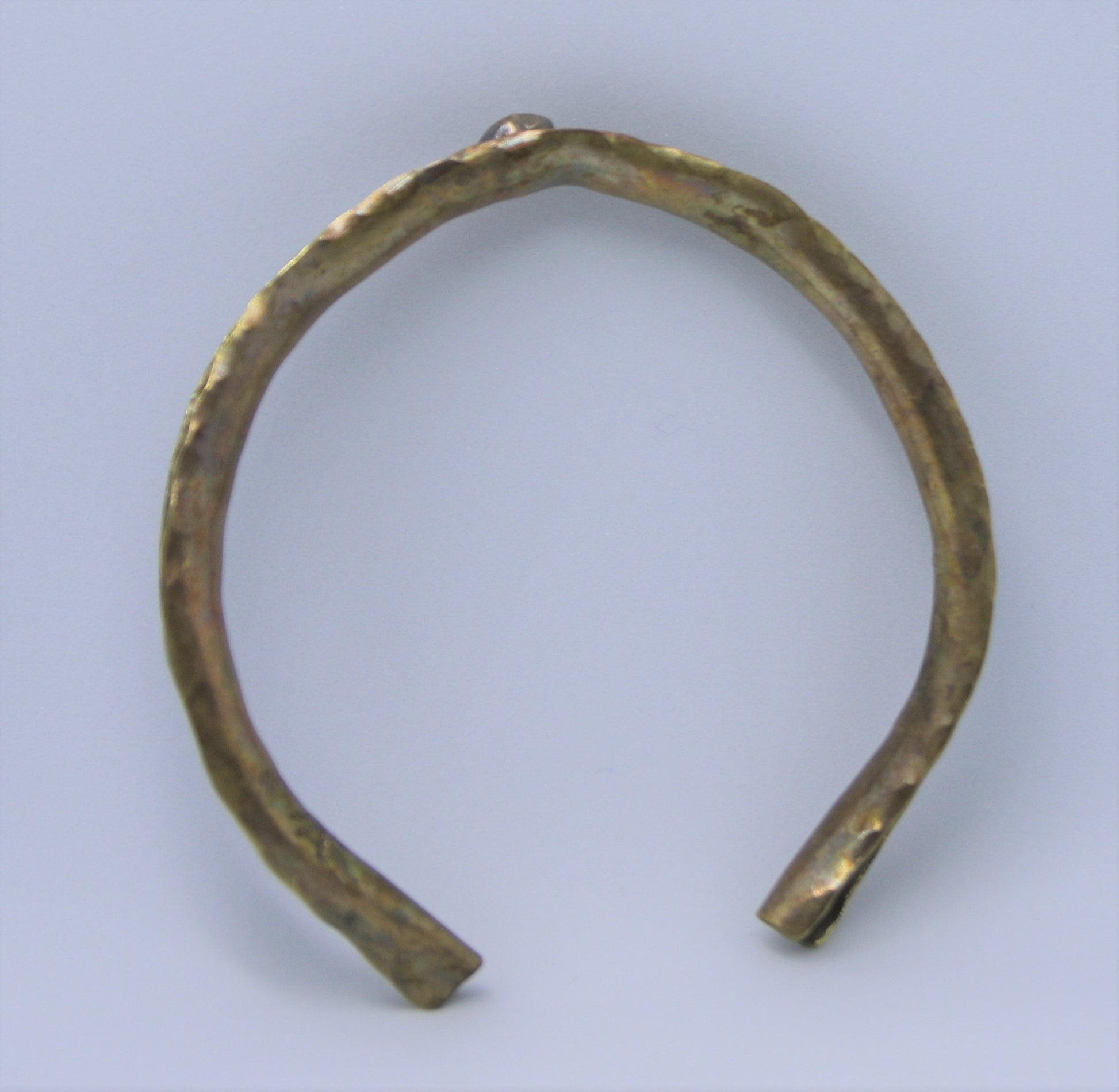 Hand forged, solid brass, open cuff bracelet, dipped in a patina bath to show it's true richness. One size fits most.